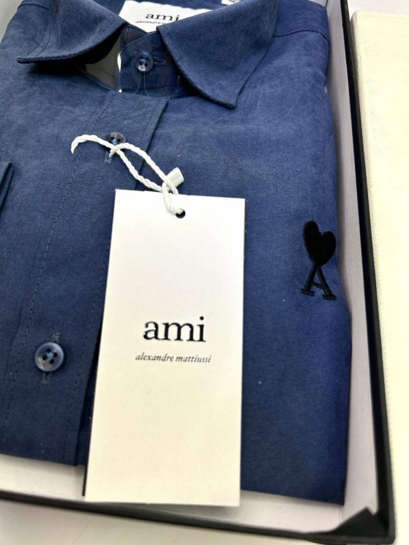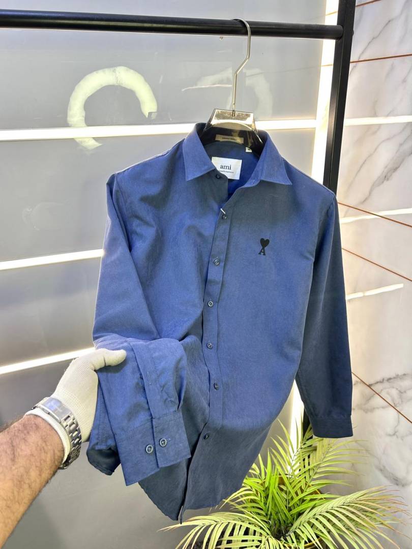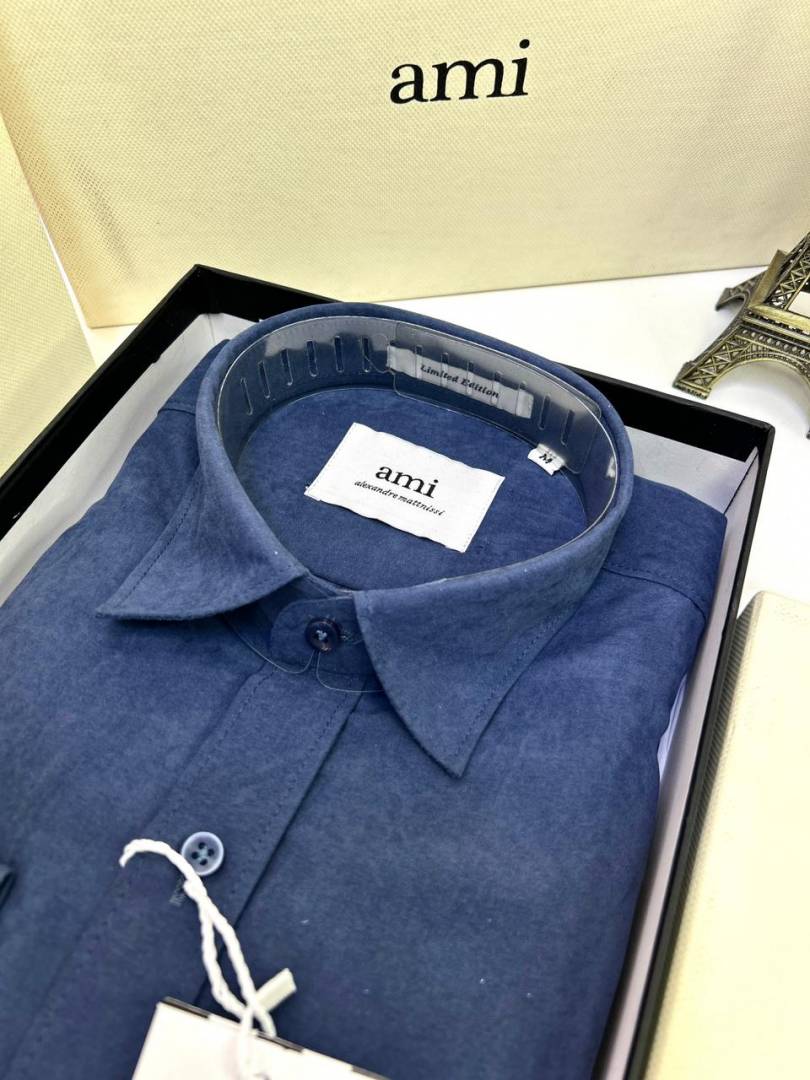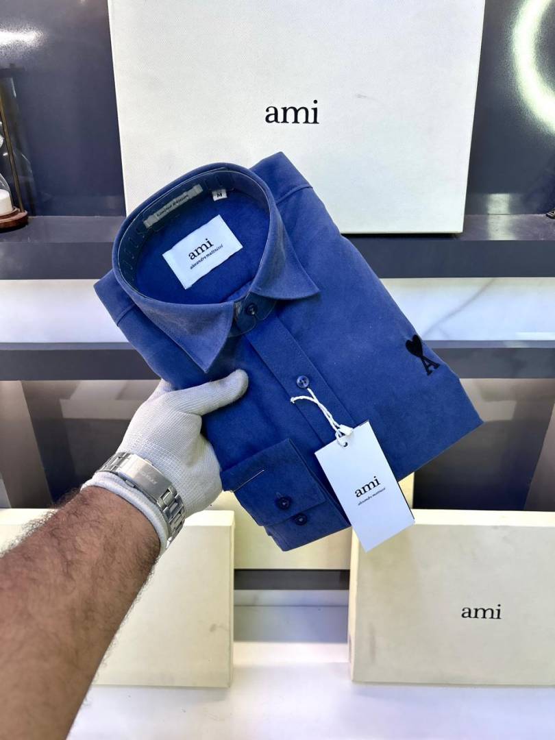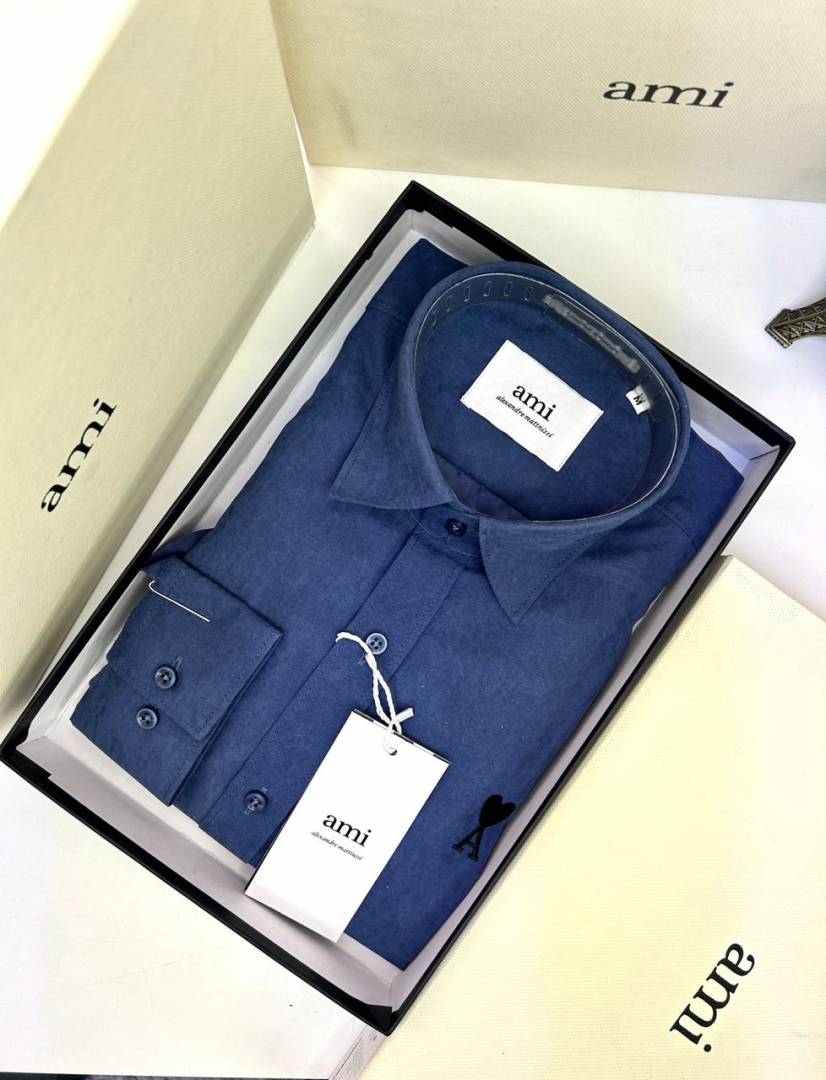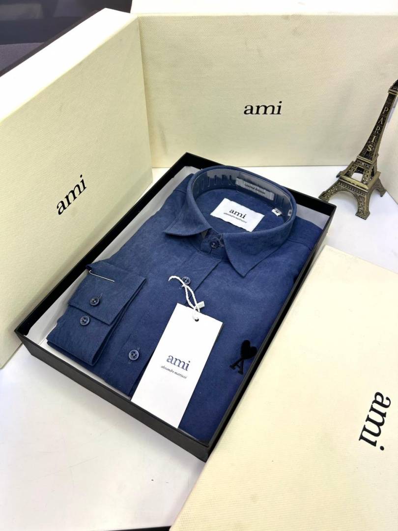 Ami Logo Navy Premium Shirt With Brand Box Packing F3203-NY