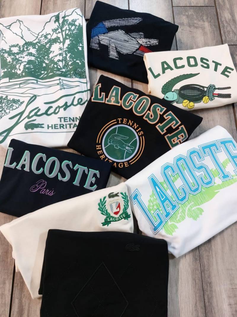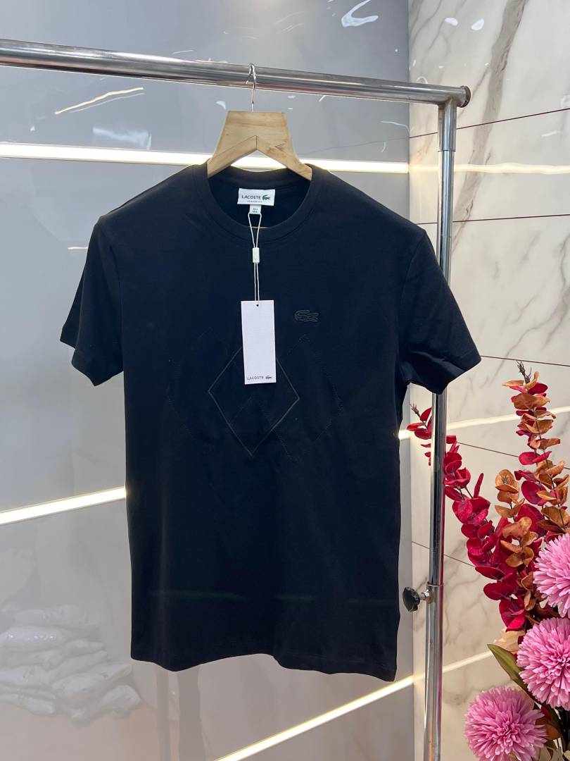 Lacost e Black Premium Imported 240 GSM Interlock Lycra Fabric Round Neck with Front Printed Design Tshirt 3320