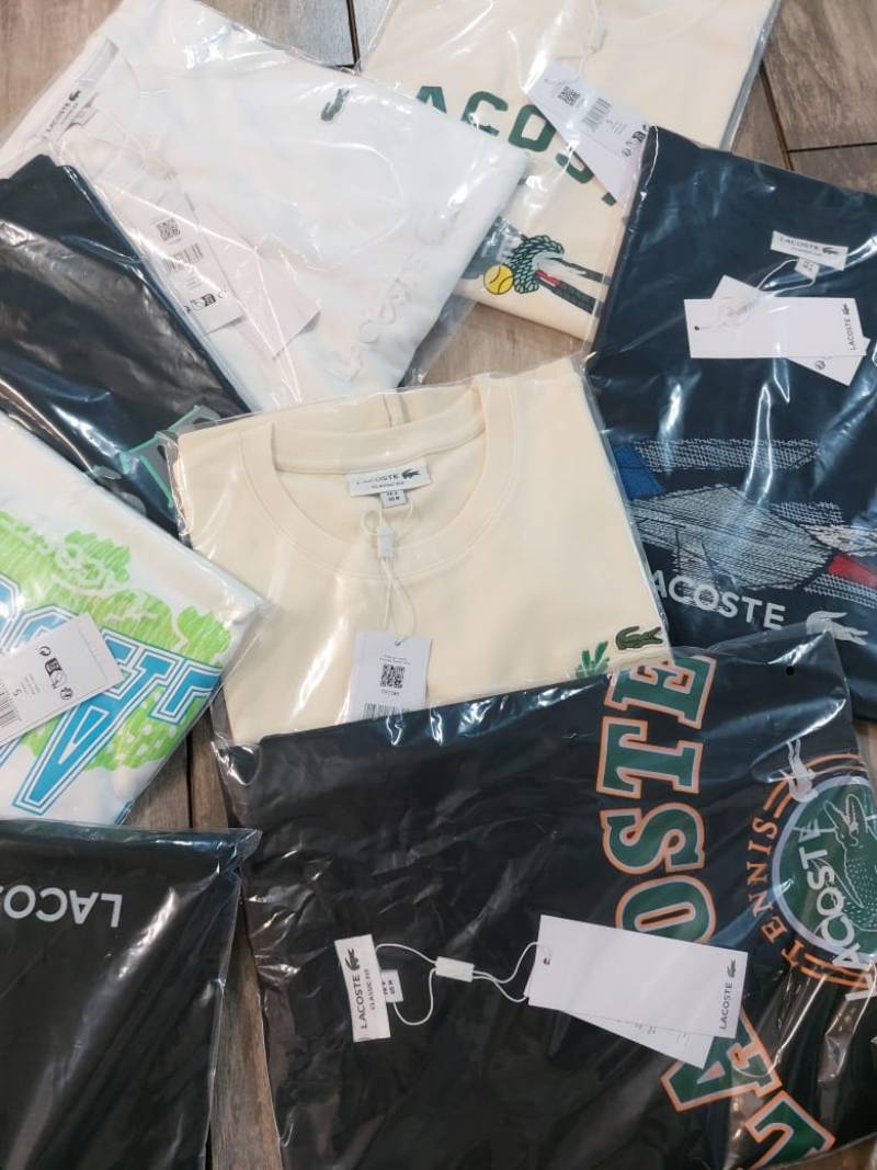 Lacost e White Premium Imported 240 GSM Interlock Lycra Fabric Round Neck with Front Printed Design Tshirt 3319
