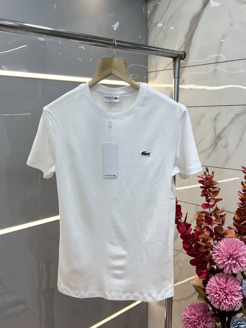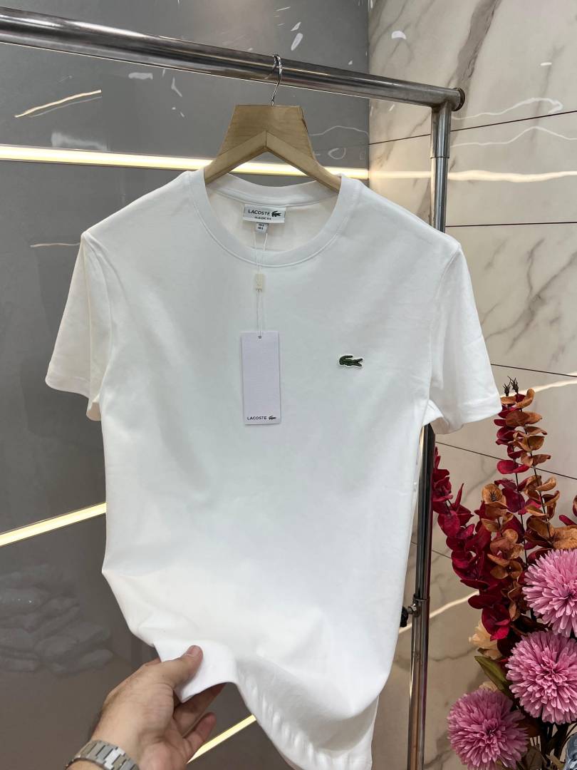 Lacost e White Premium Imported 240 GSM Interlock Lycra Fabric Round Neck with Front Printed Design Tshirt 3319