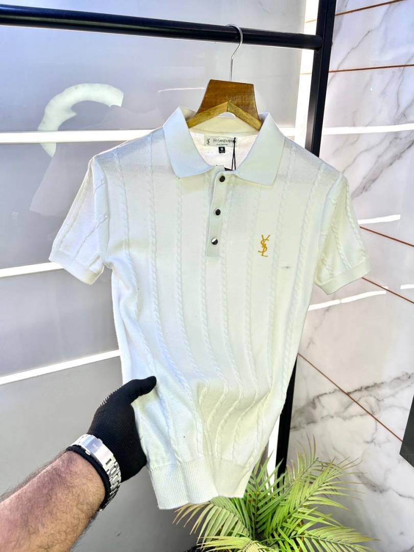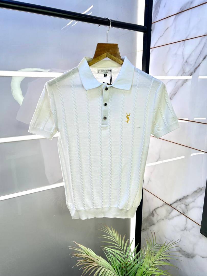 Ysl White Knitted Polo Premium Collar Neck T-shirt F3130-WH